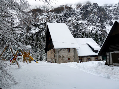 Ker je pot do koče kar prehitro minila smo jo podaljšali do Črnih vod. Tukaj smo začutili res pravi sneg, pot se je zožala, snega je bilo več....prava zima